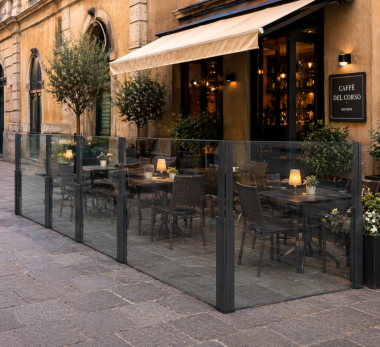 Levanta è il sistema di protezione verticale che unisce il rigore dell’alluminio alla trasparenza del vetro, con un meccanismo telescopico fluido e silenzioso.